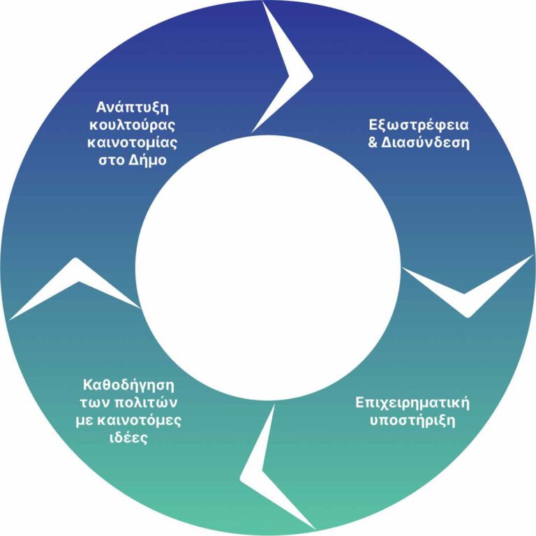 Μέσα από προγράμματα καινοτομίας, εκπαιδευτικά προγράμματα, και επιχειρηματικά εργαλεία ενισχύουμε την τοπική επιχειρηματικότητα και καλλιεργούμε την κουλτούρα καινοτομίας στον Δήμο, προάγοντας τη σταδιακή μετάβαση σε ένα μοντέλο στα πρότυπα των «Έξυπνων Πόλεων».